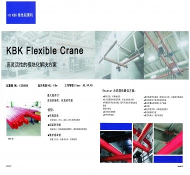 KBK軌道輕型起重機,KBK單軌軌道起重機的走向布置靈活,從簡單的、手動控制的直線軌道到大量分支的、半自動和全自動控制的環(huán)形軌道等不同軌道的任意走向。根據(jù)需要可組成單梁懸掛起重機、雙梁懸掛起重機、懸臂起重機、輕型門式起重機及堆垛起重機,還能組成大型自動化物料搬運系統(tǒng)。